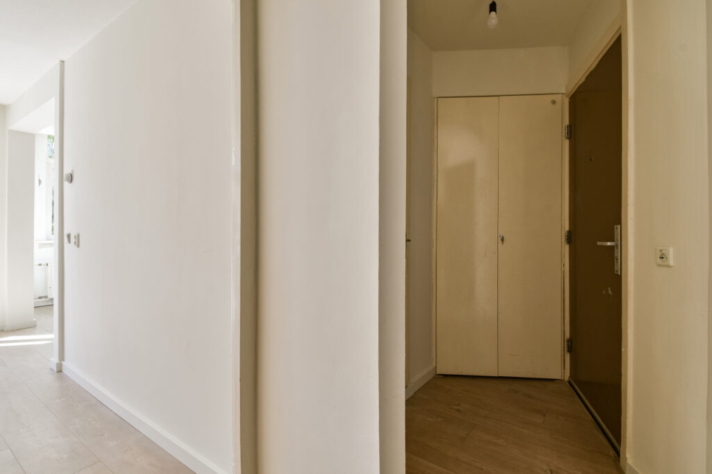 Eigen entree met toegang tot de hal die leidt naar de verschillende vertrekken van de woning. Aan de achterzijde bevindt zich de woonkamer met aangrenzende keuken, een lichte en aangename leefruimte. De keuken is halfopen en zorgt voor een fijne verbinding met de woonkamer.