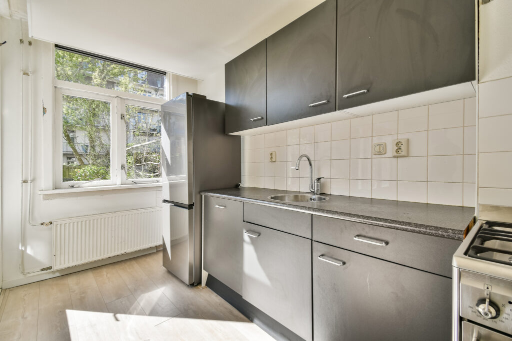 Charming and well-laid-out ground floor apartment of approximately 52 m² with a generous backyard of approximately 96 m², located on a pleasant and quiet street in Amsterdam. The property offers a practical layout with a bright living room, separate kitchen, bedroom, and several convenient storage spaces. What makes this property particularly attractive is the possibility to extend into the garden. Ideal for buyers who wish to realise their own housing ambitions.