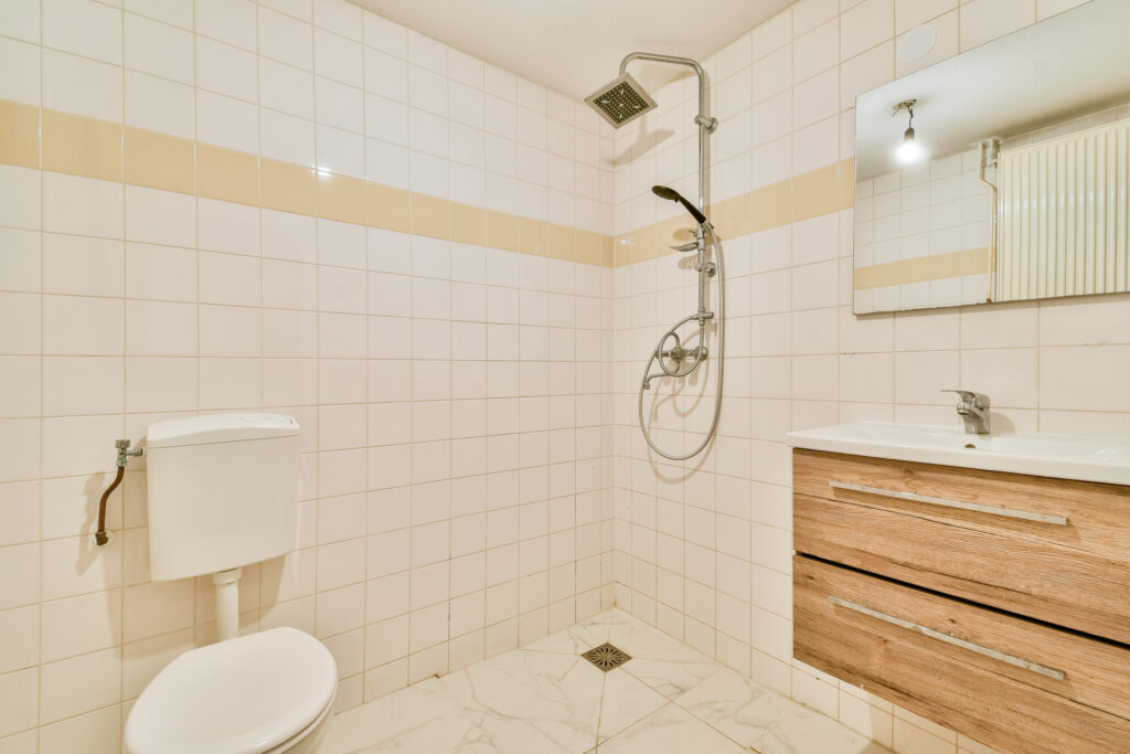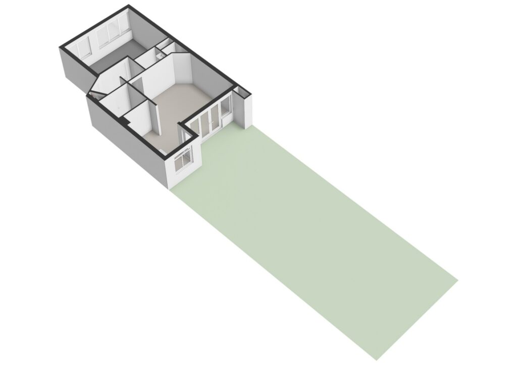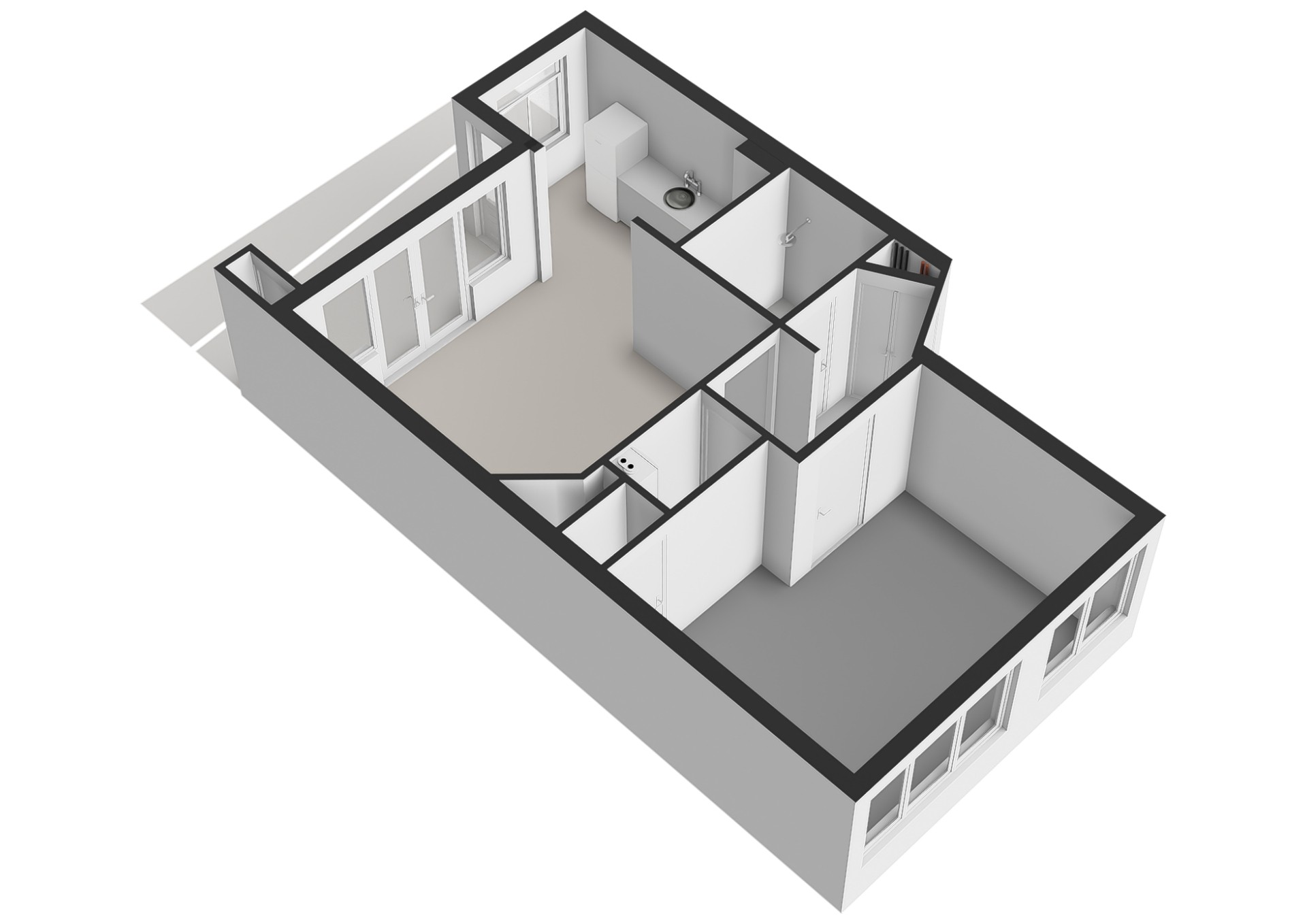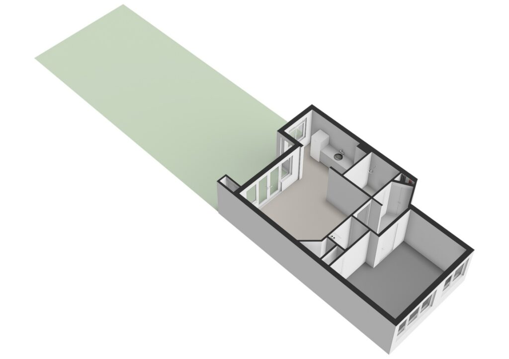 De slaapkamer ligt aan de voorzijde van de woning. De badkamer is centraal gelegen en voorzien van een douche en toilet. Daarnaast zijn er meerdere praktische kastruimtes aanwezig.