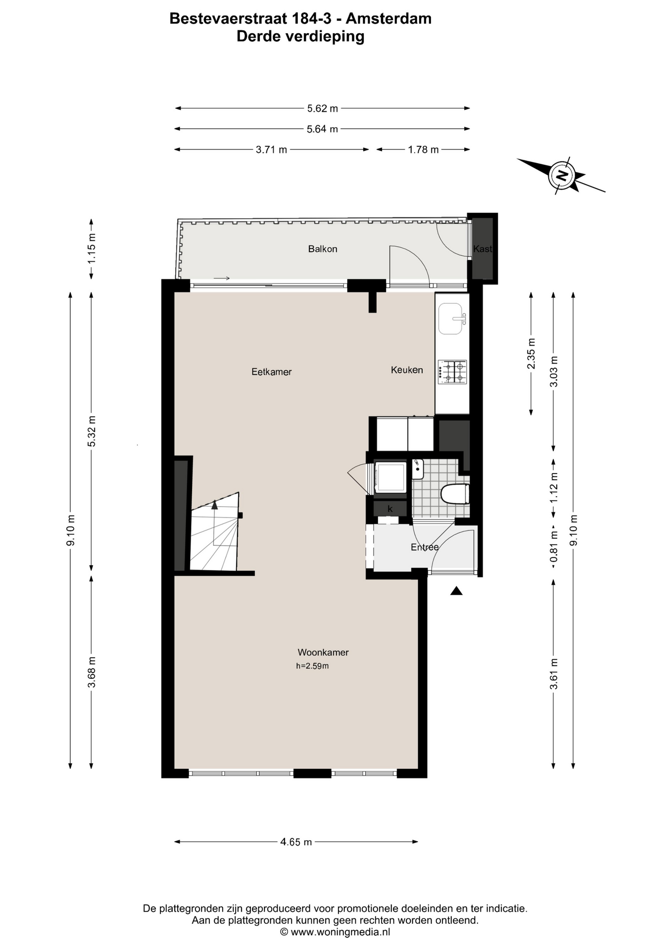 Alle opgegeven maten en oppervlakten zijn indicatief. Koper heeft zijn eigen onderzoeksplicht naar alle zaken, die voor hem van belang zijn. Met betrekking tot deze woning is ons kantoor de makelaar van verkoper. Wij adviseren u een NVM/MVA Makelaar in te schakelen, die u met zijn deskundigheid zal bijstaan in het aankoopproces. Indien u geen professionele begeleiding wenst in te schakelen, acht u zich volgens de wet deskundig genoeg om alle zaken, die van belang zijn, te kunnen overzien. De Algemene Consumentenvoorwaarden van de NVM zijn van toepassing.