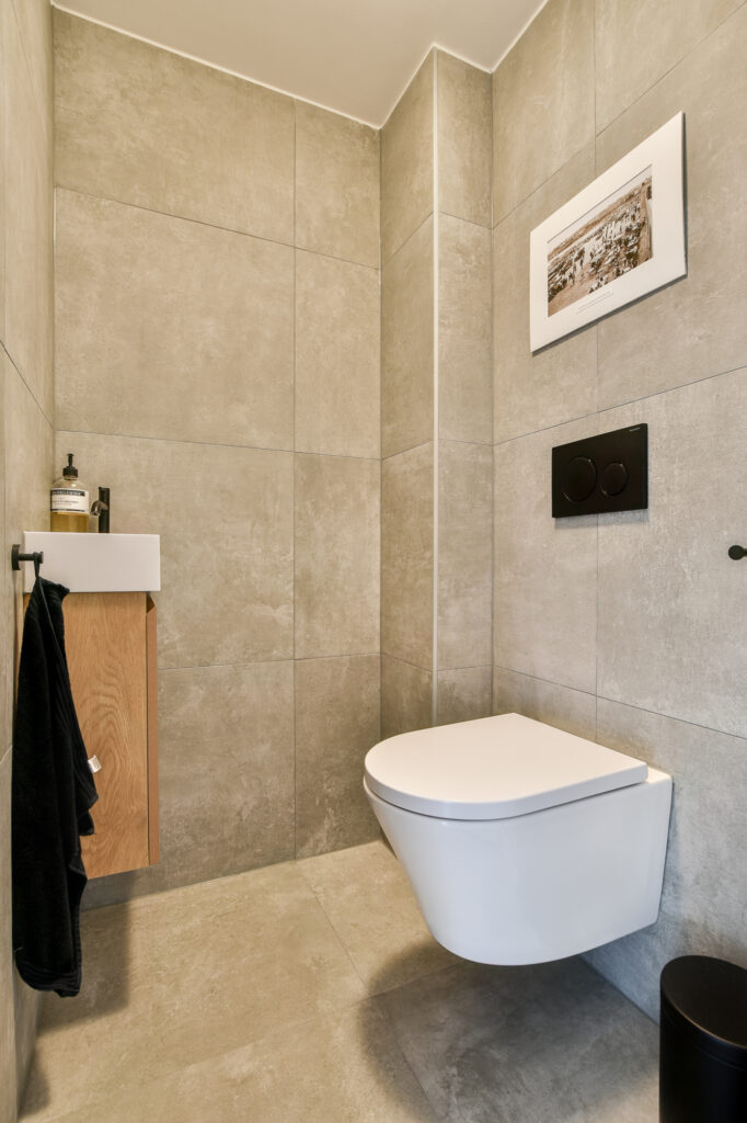 Via the internal staircase you reach the sleeping floor with two spacious bedrooms and a luxury bathroom, fitted with walk-in shower, bathtub and toilet. If desired, a third bedroom can easily be created here.