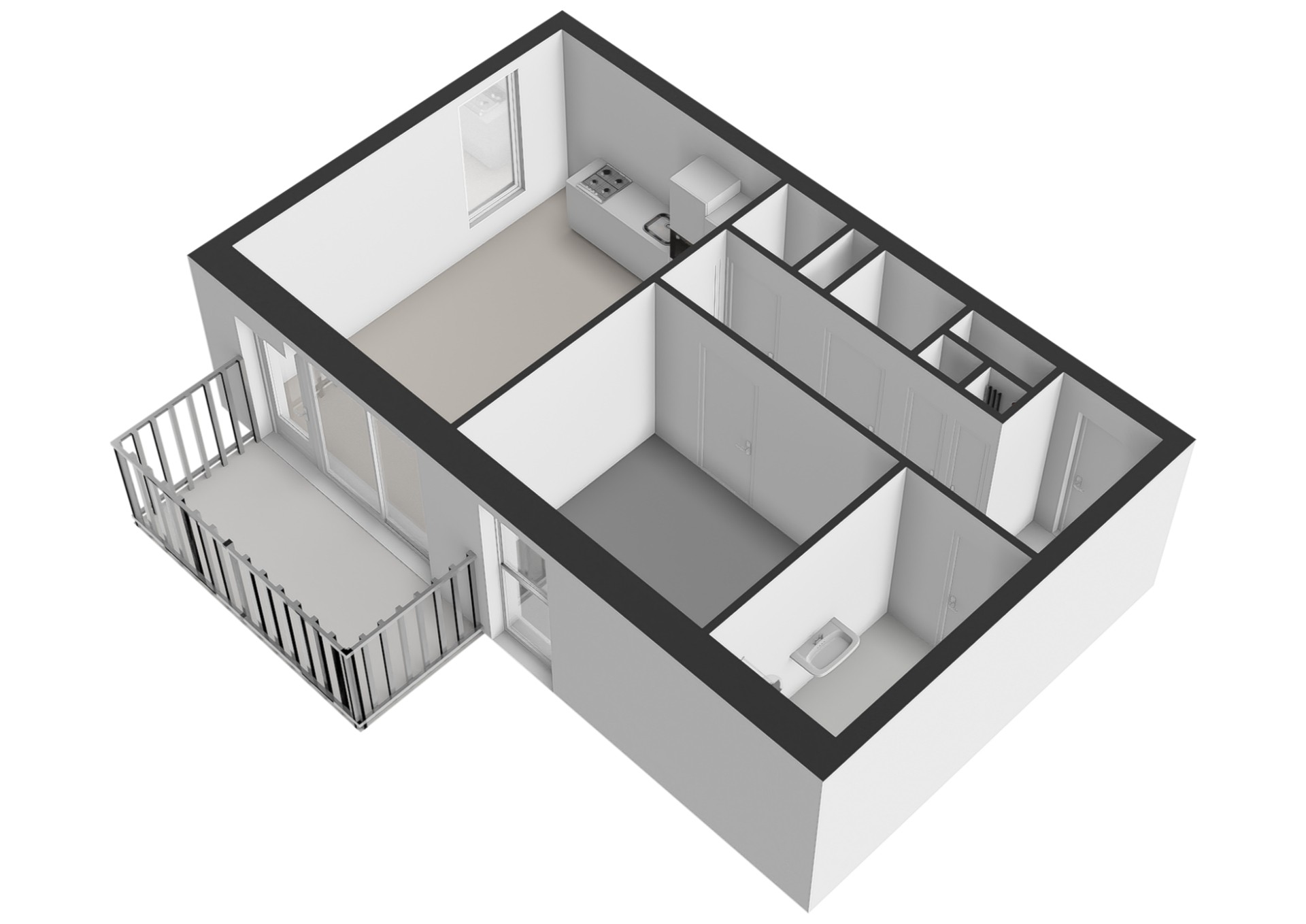 Derde etage: Entree, hal met aan je rechterhand achtereenvolgens de ruimte voor de stadsverwarming, meterkast, toilet en bergkast met de wasmachine en drogeraansluiting. Vervolgens kom je in de woonkamer met open keuken voorzien van diverse inbouwapparatuur. De lichte woonkamer geeft je toegang tot het balkon op het westen. De slaapkamer is ruim en de badkamer is voorzien van douche en wastafel.