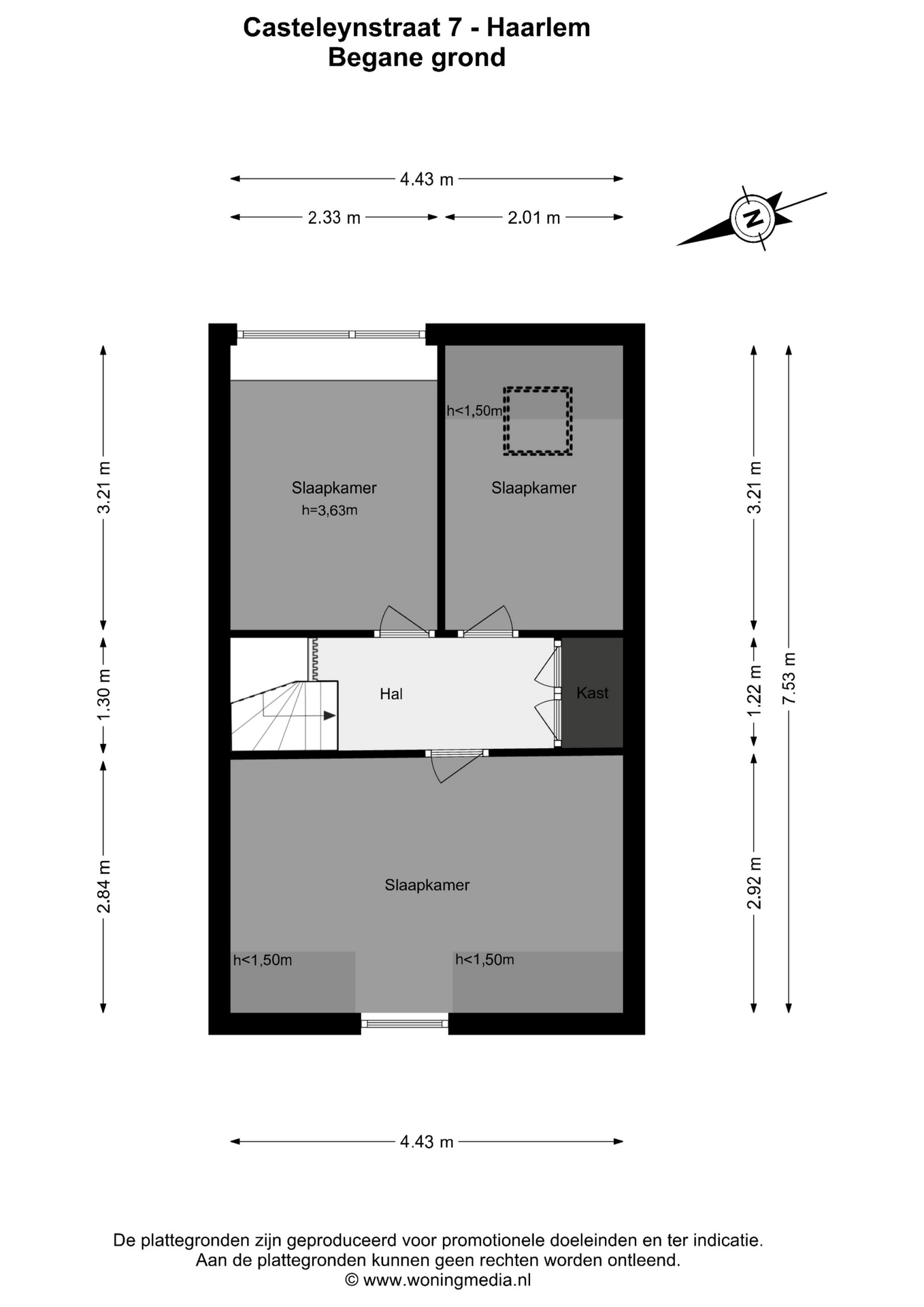 Alle opgegeven maten en oppervlakten zijn indicatief. Koper heeft zijn eigen onderzoeksplicht naar alle zaken die voor hem van belang zijn. Met betrekking tot deze woning is ons kantoor de makelaar van verkoper. Wij adviseren je een NVM-makelaar in te schakelen die je met zijn deskundigheid zal bijstaan in het aankoopproces. Indien je geen professionele begeleiding wenst in te schakelen, acht je je volgens de wet deskundig genoeg om alle zaken die van belang zijn te kunnen overzien. De Algemene Consumentenvoorwaarden van de NVM zijn van toepassing.