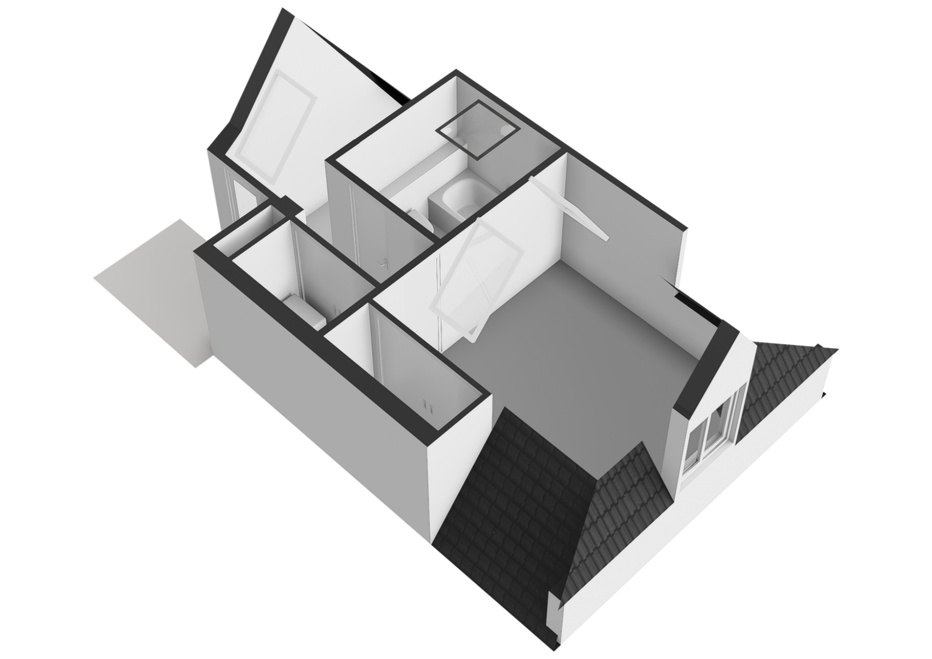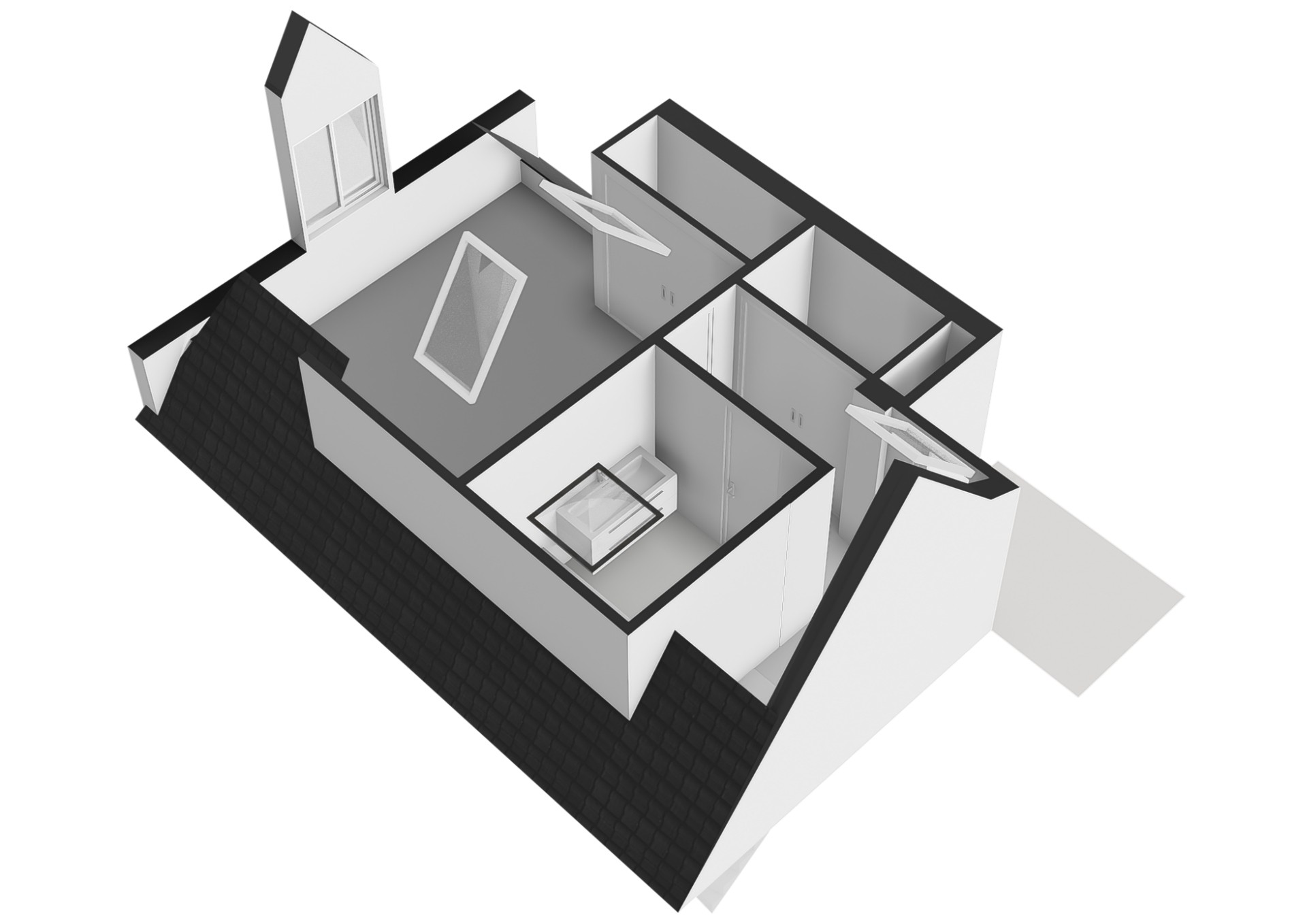Via een interne trap bereik je de bovenste woonlaag. Hier bevinden zich de overloop, de slaapkamer met inbouwkast en zichtbare kapconstructie, en de moderne badkamer (2021) met vloerverwarming, bad/douche, wastafelmeubel, toilet. Tevens is er een aparte kast met aansluiting voor wasmachine en droger. Vanuit de overloop is er toegang tot het kleine dakterras.