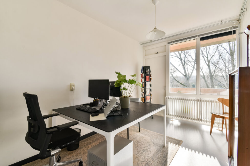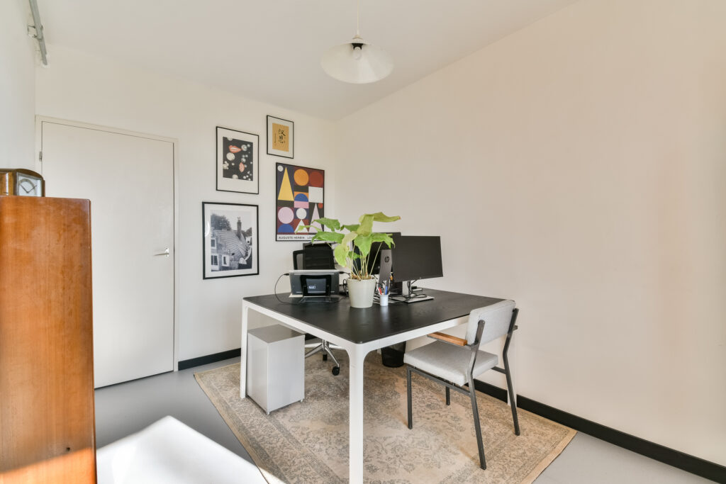 De woning beschikt over twee slaapkamers, beide met directe toegang tot het zonnige balkon op het zuiden. Hier geniet je vrijwel de hele dag van de zon. Eén van de kamers is momenteel in gebruik als werkkamer, maar kan uitstekend dienen als tweede slaapkamer of kinderkamer.