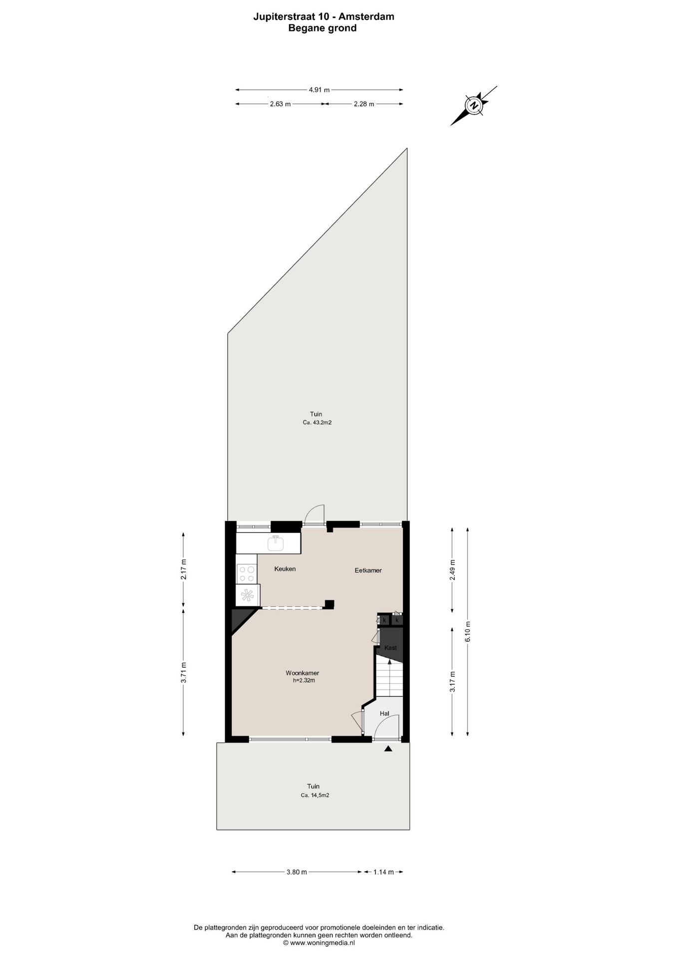 Begane grond: voortuin, entree, hal, lichte woonkamer aan de voorzijde met airco, eetkamer met moderne halfopen keuken uit 2020, voorzien van diverse inbouwapparatuur, zoals een oven, keramisch kookplaat en vaatwasser. In het woongedeelte ligt een prachtige gietvloer. Via de achterzijde heb je toegang tot de tuin met achterom (zuidoost). Tevens beschik je over een separate privéberging, bereikbaar via de steeg.