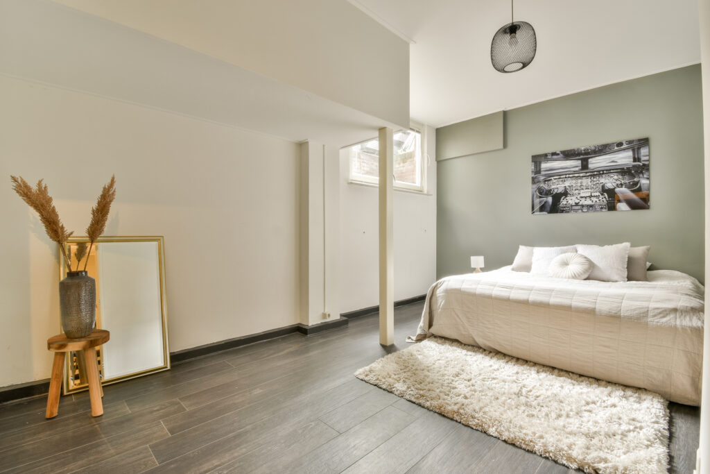Basement: Via the stairs, you enter the spacious modern open kitchen with a separate storage room where there is also space for the boiler and heating system for the underfloor heating. The new kitchen from 2020 is equipped with various built-in appliances, such as a dishwasher, stove, and refrigerator. Adjacent is the very spacious bedroom/office with a hallway to the adjacent storage room, which can optionally be incorporated into the bedroom. A wardrobe closet is now built in this hallway. The bathroom (2020) is located next to the kitchen and consists of a large walk-in shower, washing machine connection, and double sink with vanity.