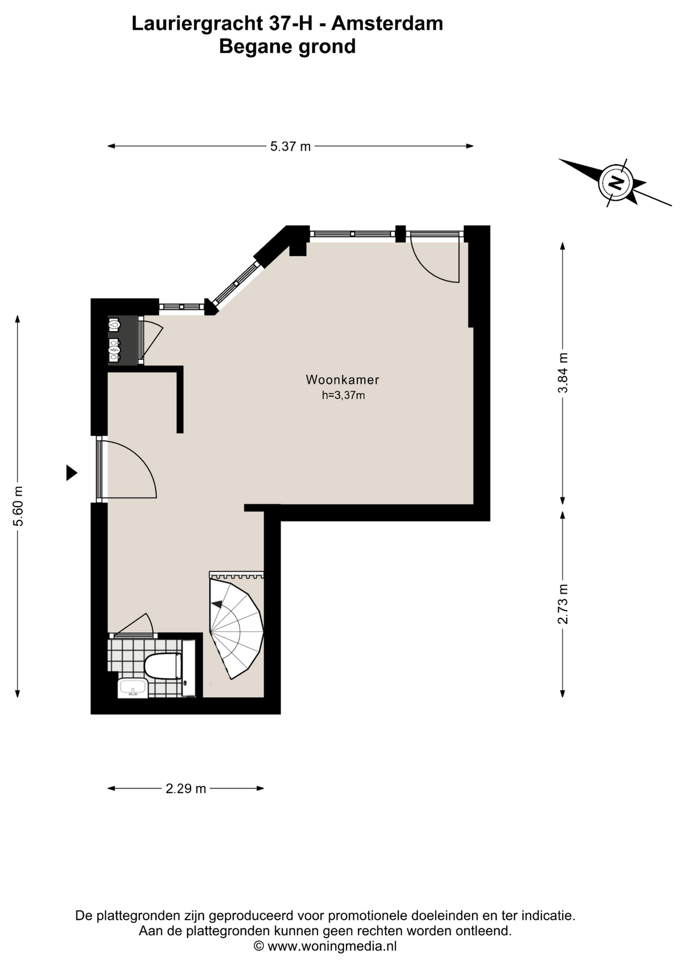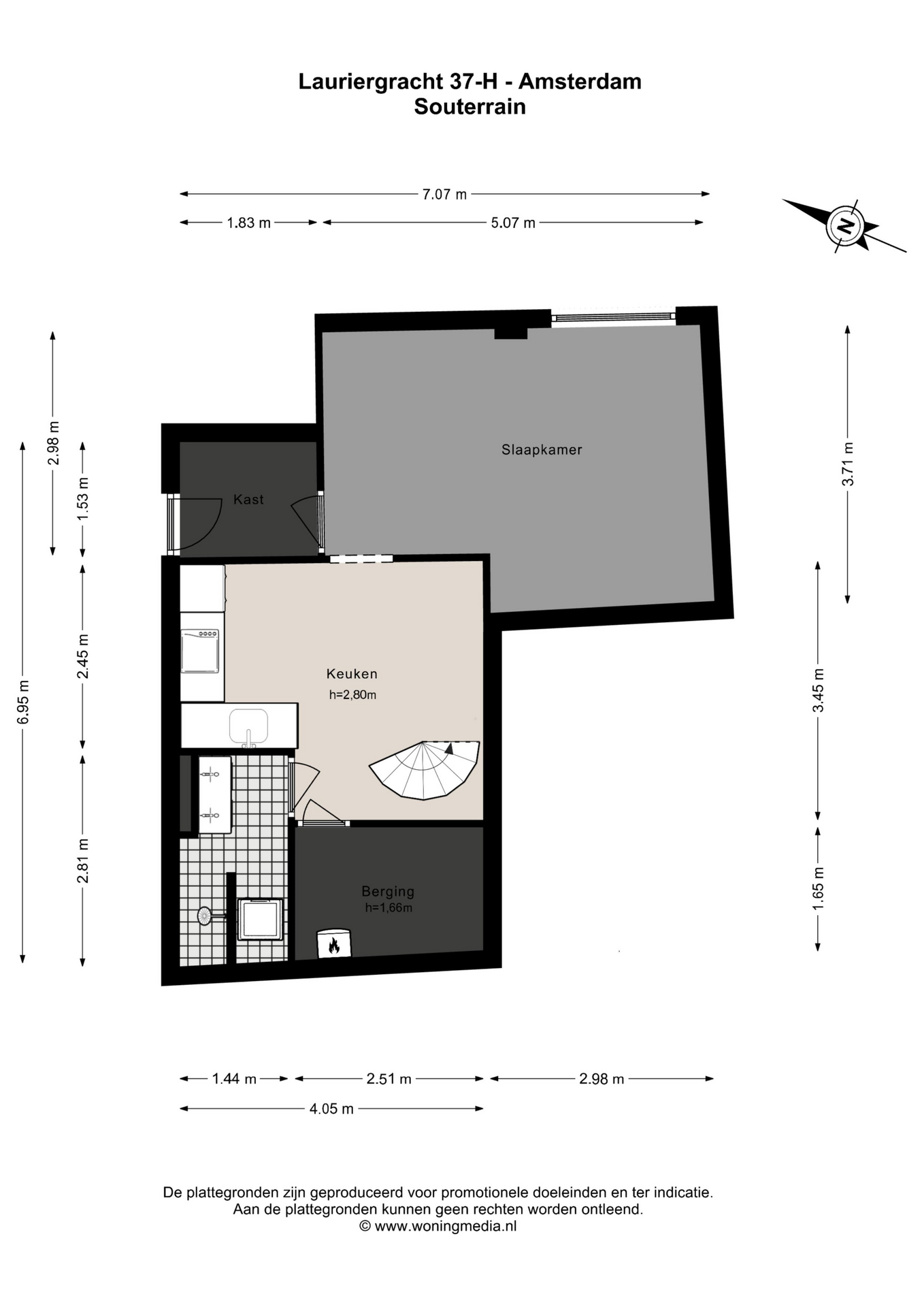 -Woonoppervlakte (NEN2580) 63 m², verdeeld over begane grond en souterrain