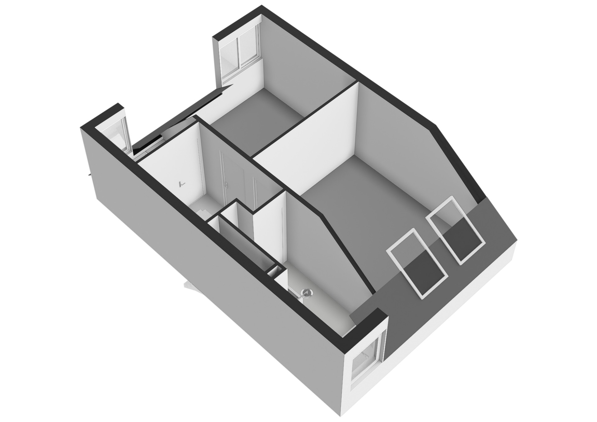 Op de zolder is er een derde slaapkamer gerealiseerd voorzien van twee dakramen en bergruimte achter de knieschotten. Verder vind je hier ook de cv installatie.