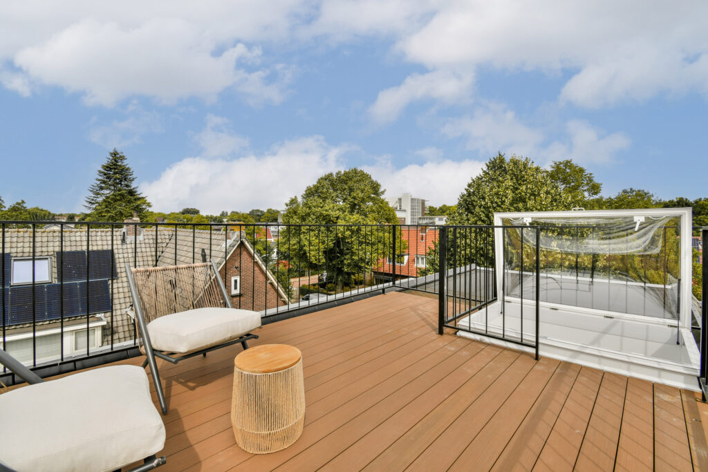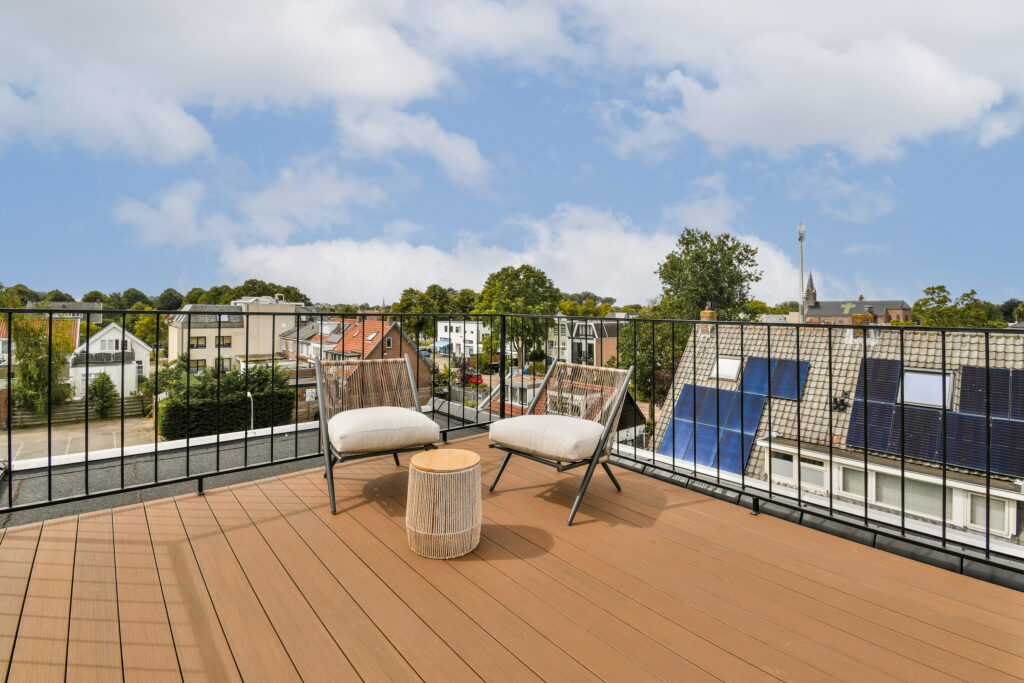 – dakterras ca. 16m², balko achterzijde ca. 10 m² (Zuidwest), balkon voorzijde ca. 1,5m²