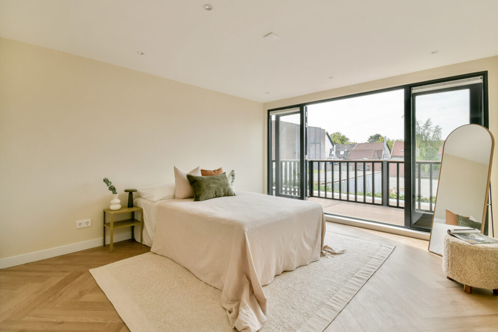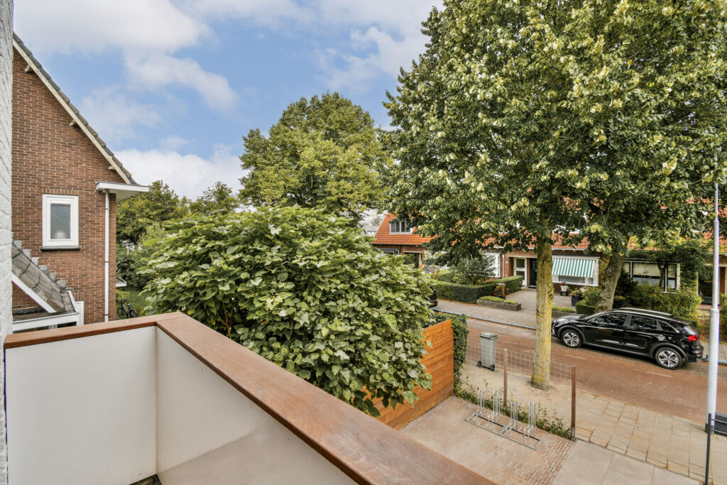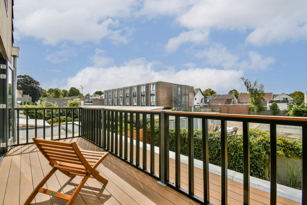 Eerste verdieping: overloop met toegang tot drie ruime slaapkamers en de moderne badkamer. De badkamer is voorzien van een ligbad, inloopdouche, en dubbele wastafel. Het toilet bevindt zich verderop in de hal. Aan zowel de voor- als achterzijde bevindt zich een balkon, waardoor er veel lichtinval en buitenruimte is.