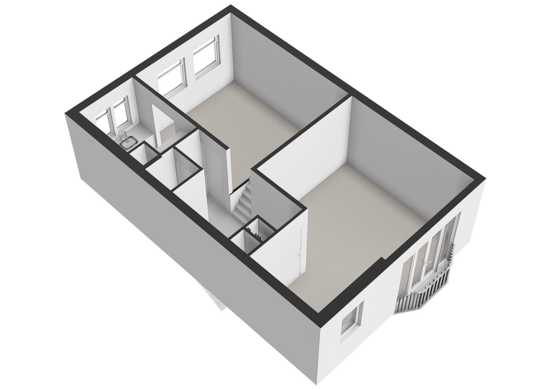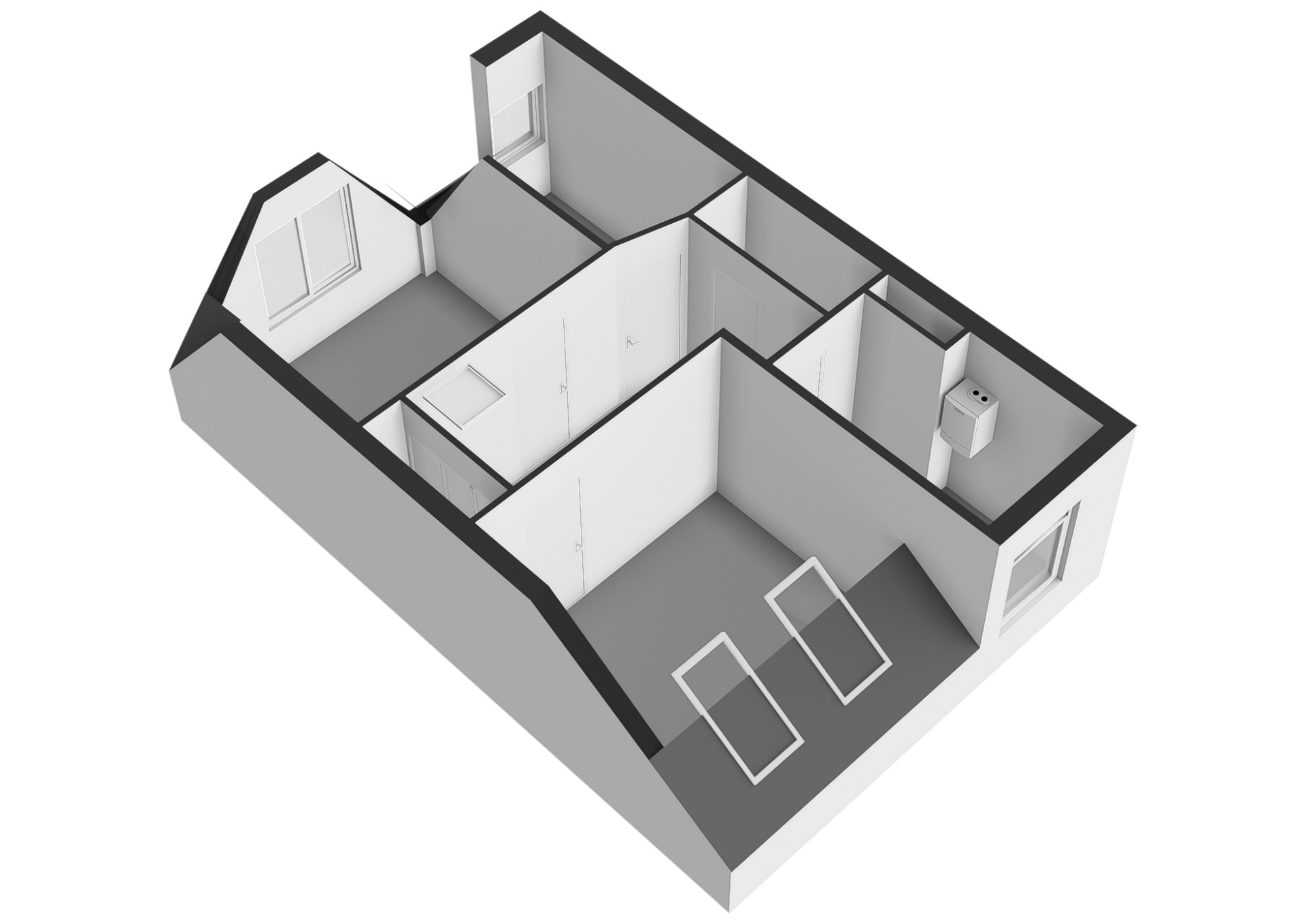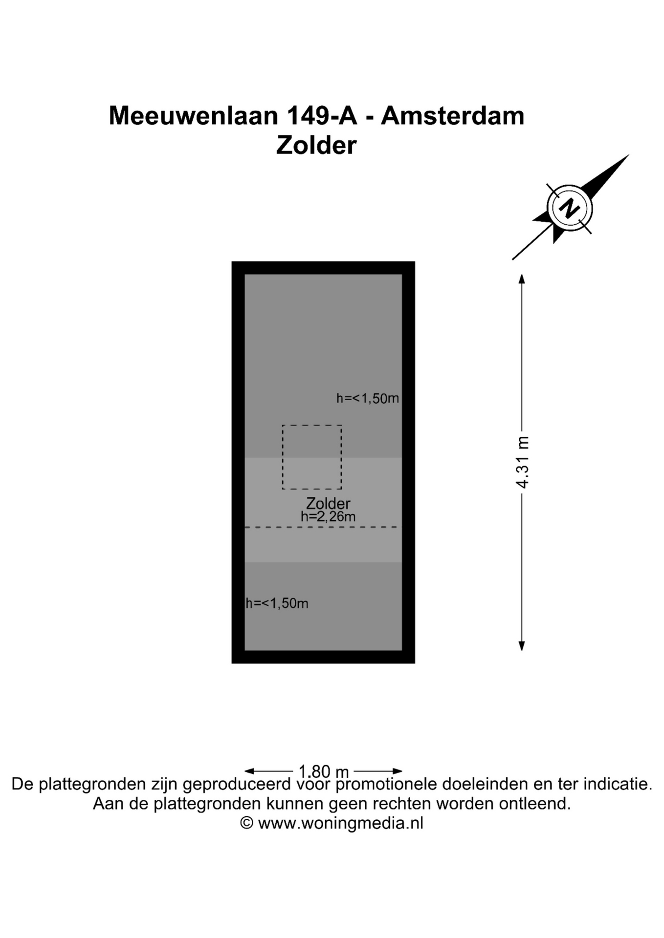 Via een vlizotrap bereik je de zolderverdieping: een volledige ruimte over de hele woning, met stahoogte (2,26 m) in het midden, ideaal voor opslag of toekomstige uitbreiding.