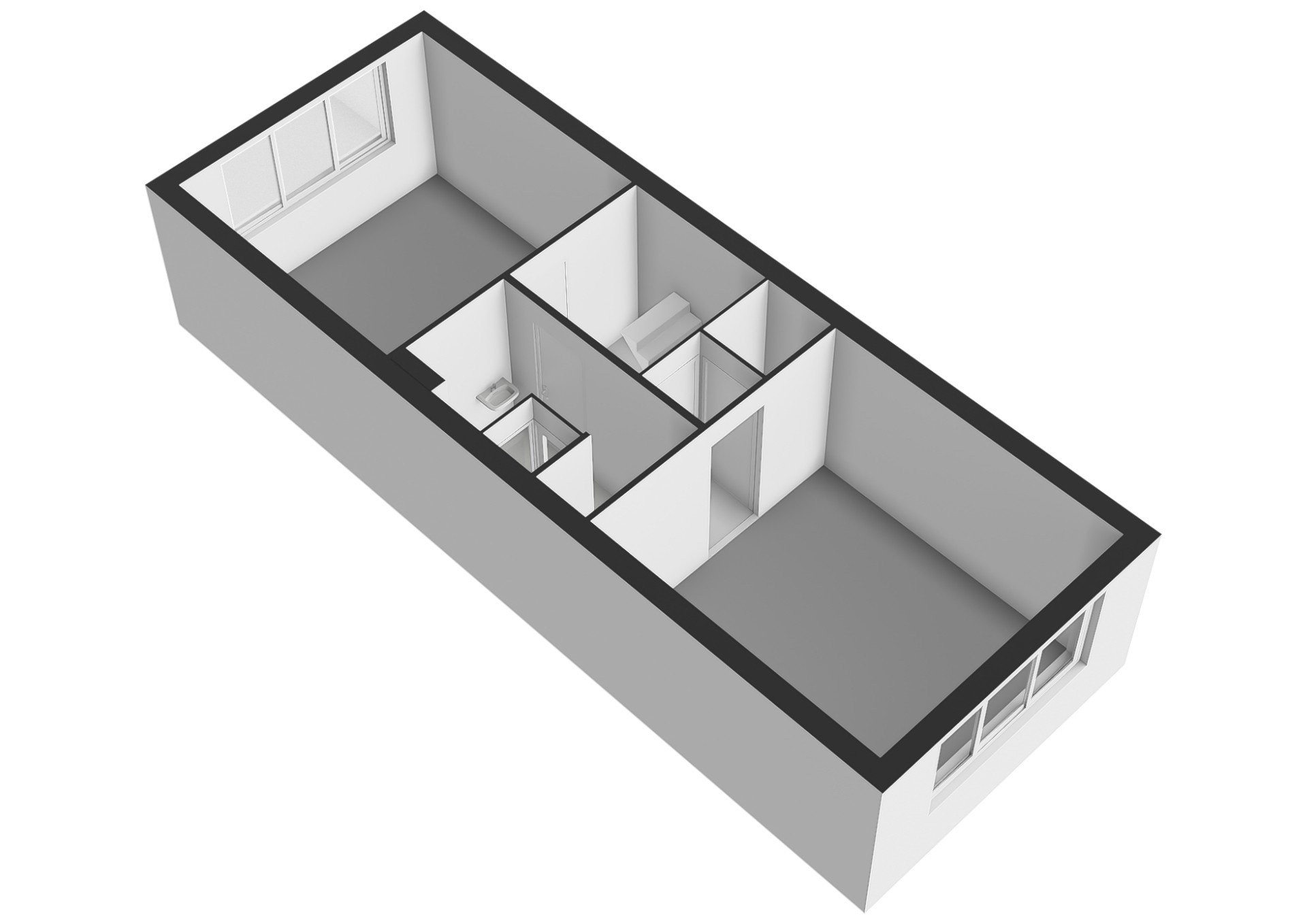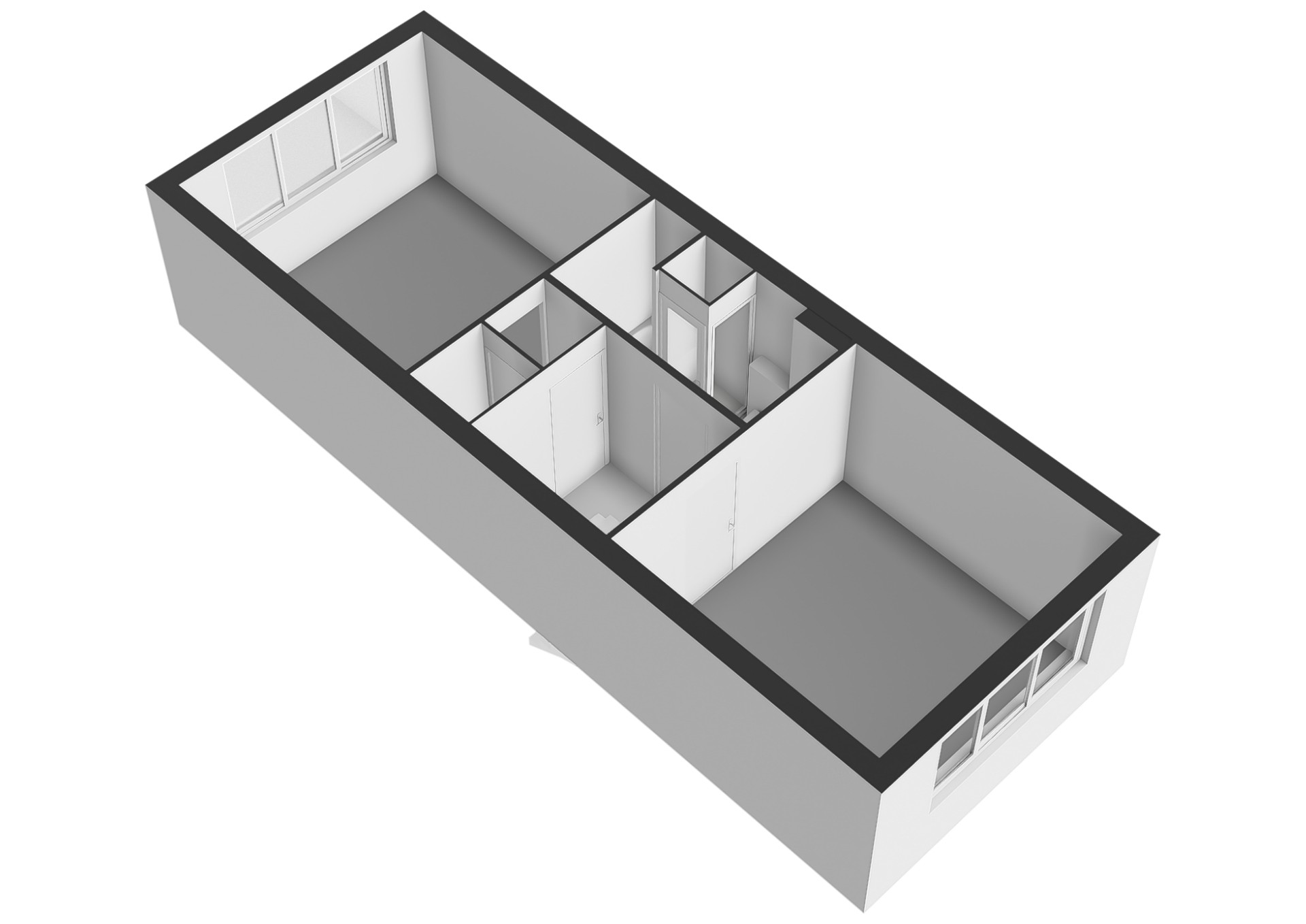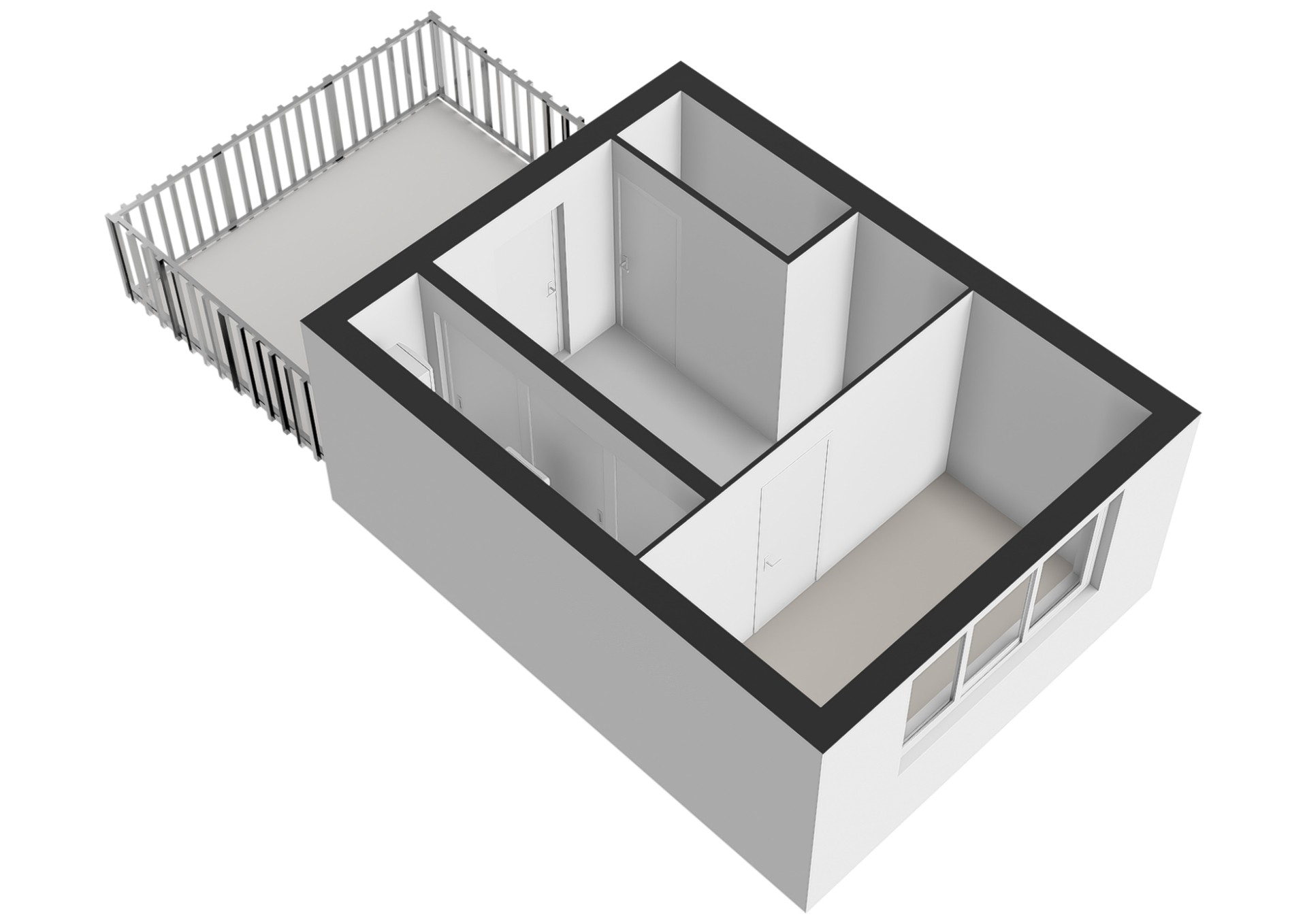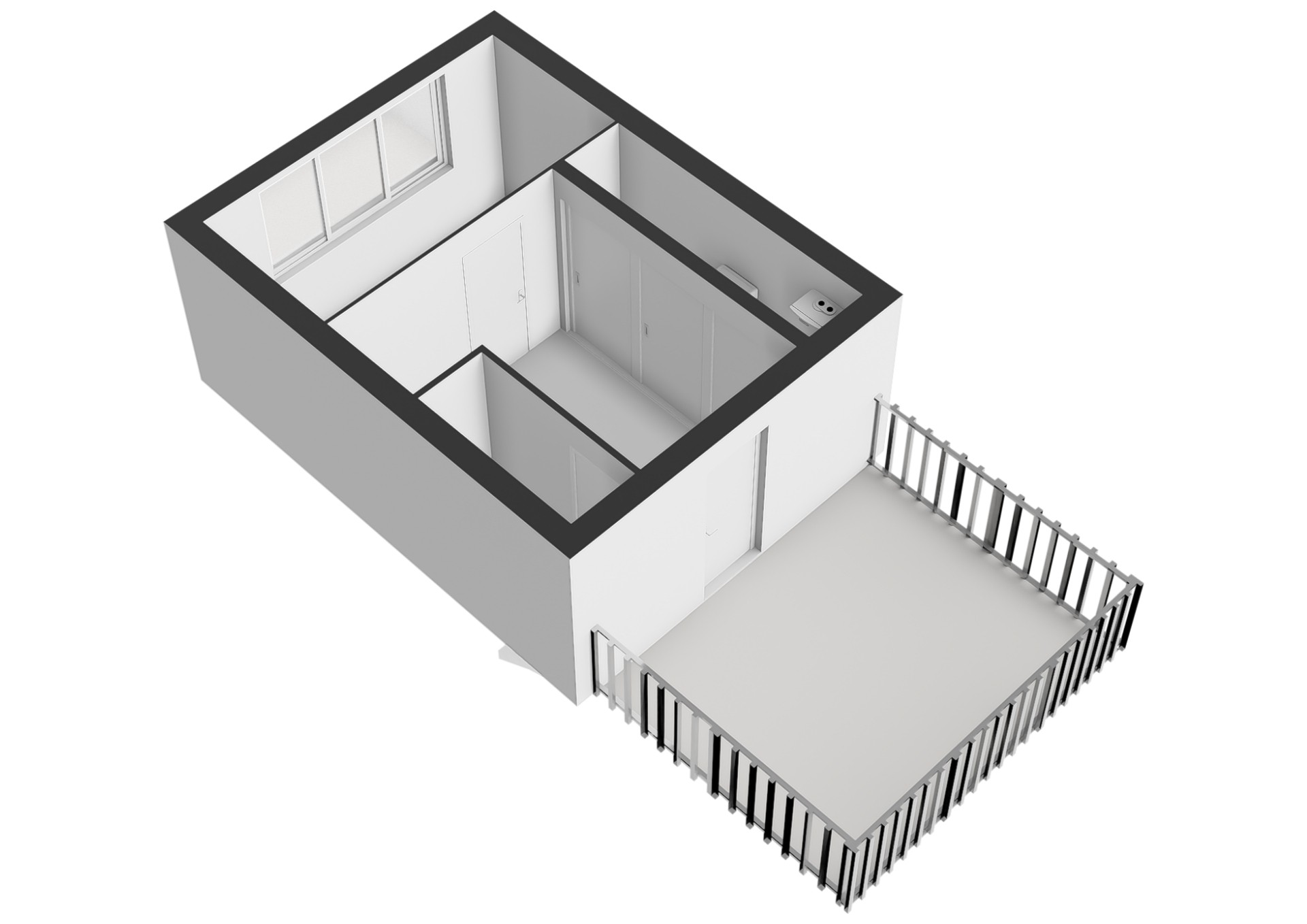 Met de volgende trap lopen we naar de tweede etage. Hier is aan de achterkant van de woning een derde ruime slaapkamer met inbouwkast te vinden en aan de voorkant een ruim en zonnig dakterras. Eventueel is het mogelijk om een vierde slaapkamer te realiseren door het balkon/dakterras uit te bouwen (vergunningsplichtig).