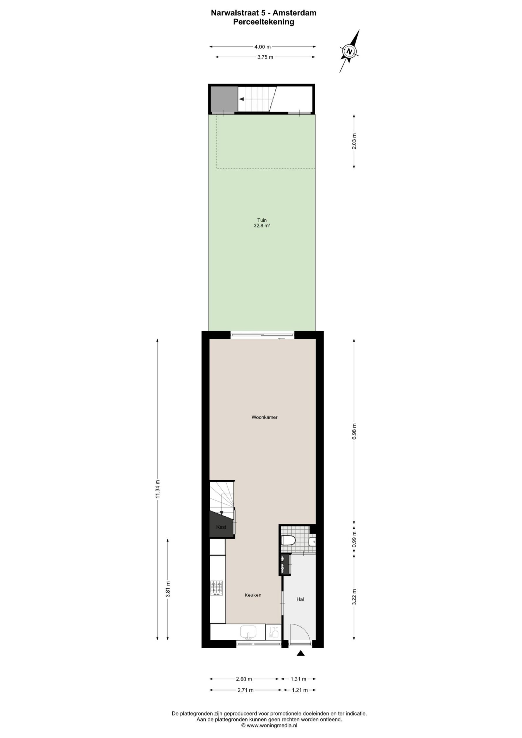 Je vindt de Narwalstraat in de Walvisbuurt in Amsterdam Noord. Een groot voordeel is dat de woning aan een doodlopende straat ligt, daarom heb je hier alleen verkeer van mensen die willen parkeren. Het is een kindvriendelijke buurt waar relatief veel gezinnen wonen. Er zijn dan ook meerdere scholen te vinden in de directe omgeving. De woning is zeer centraal gelegen ten opzichte van de A5, A8 en de A10, deze zijn binnen enkele minuten te bereiken. Bus 111, die elke 15 minuten gaat, brengt je met 20 minuten naar het Centraal station. Met iets minder dan 10 minuten fietsen sta je op de NDSM-werf, vanaf hier kun je niet alleen de pont naar Centraal station of de Pontsteiger pakken, maar hier zijn ook het hele jaar door leuke festivals te vinden. Voor een heerlijk hapje eten kun je hier oa. terecht bij Pllek, Noorderlicht, de IJ-kantine Loetje aan ’t IJ en Fred’s Kitchen. Natuurgebied ’t Twiske ligt op ongeveer 5 minuten fietsen, je kunt hier heerlijk wandelen, hardlopen of gewoon even uitwaaien.