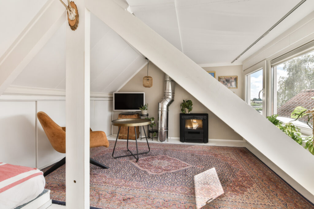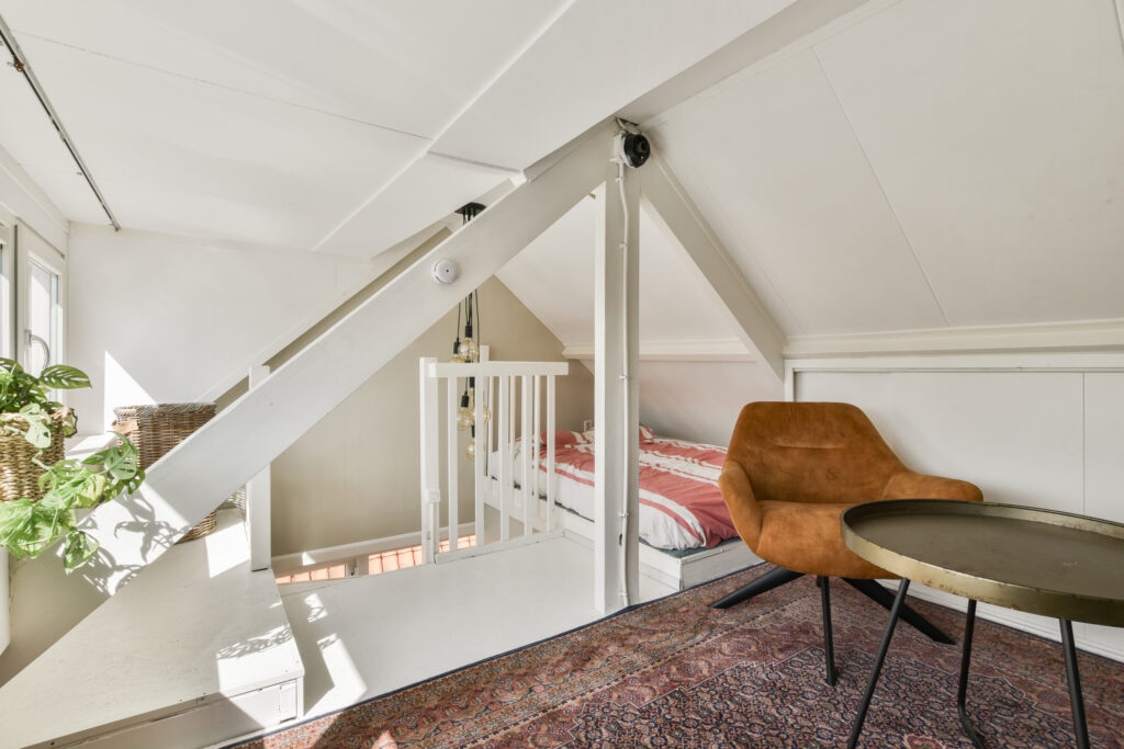 Fixed staircase to the attic with atmospheric work/bedroom, with dormer. Due to the ceiling height of 1.90 meters this does not count towards the official living area, but this space is perfectly usable.