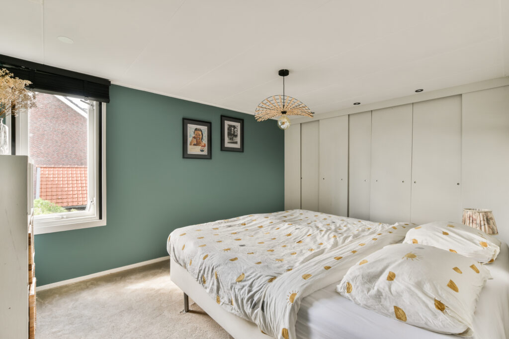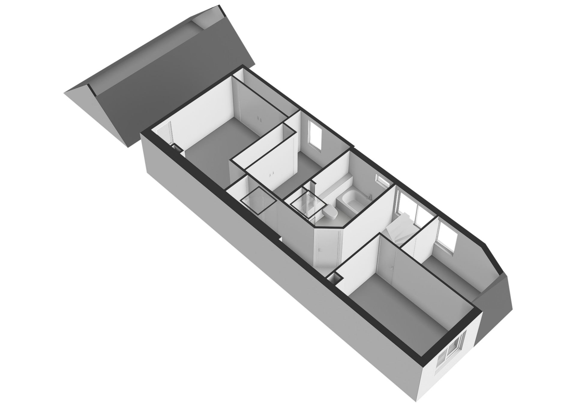 Overloop, slaapkamer aan de voorzijde, tweede slaapkamer aan de voorzijde, badkamer met ligbad, douche, dubbele wastafel en toilet. Verder een slaapkamer aan de zijkant met zijraam en de ruime hoofdslaapkamer aan de achterzijde met vaste kastenwand.