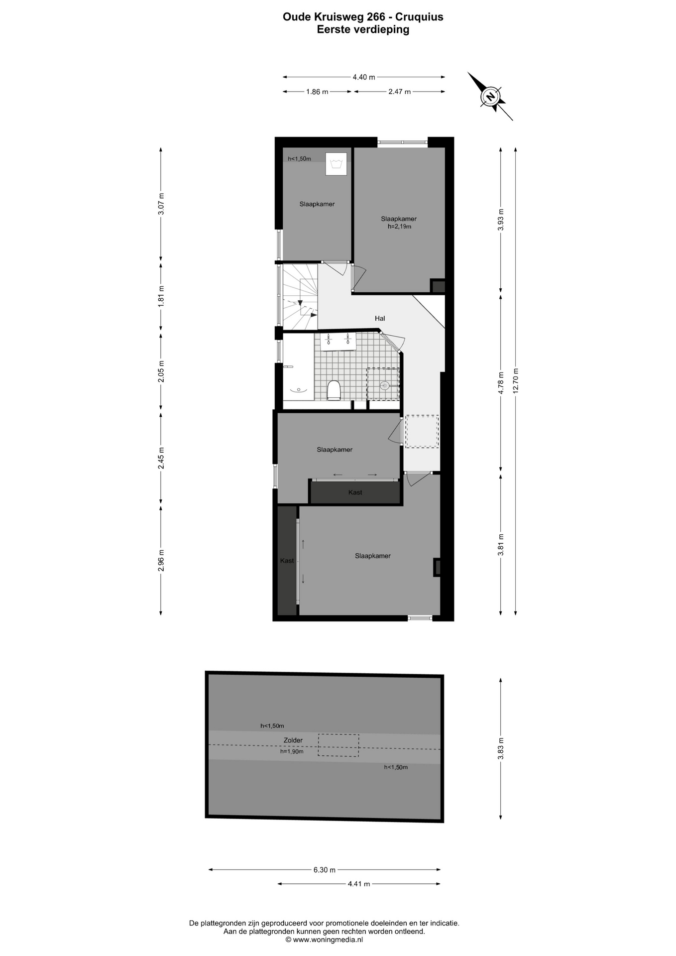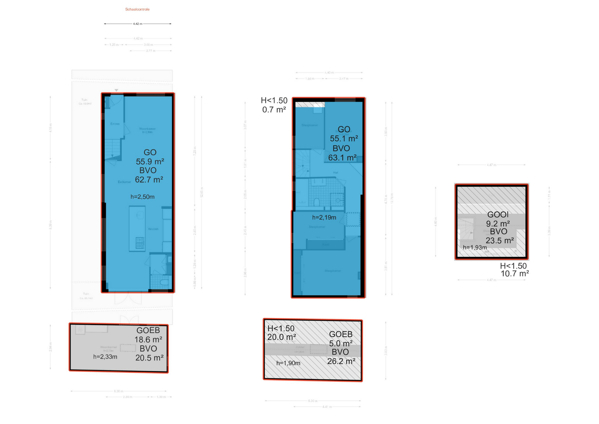 – Overige inpandige ruimte (zolder, h=1.90 m): 9,2 m²