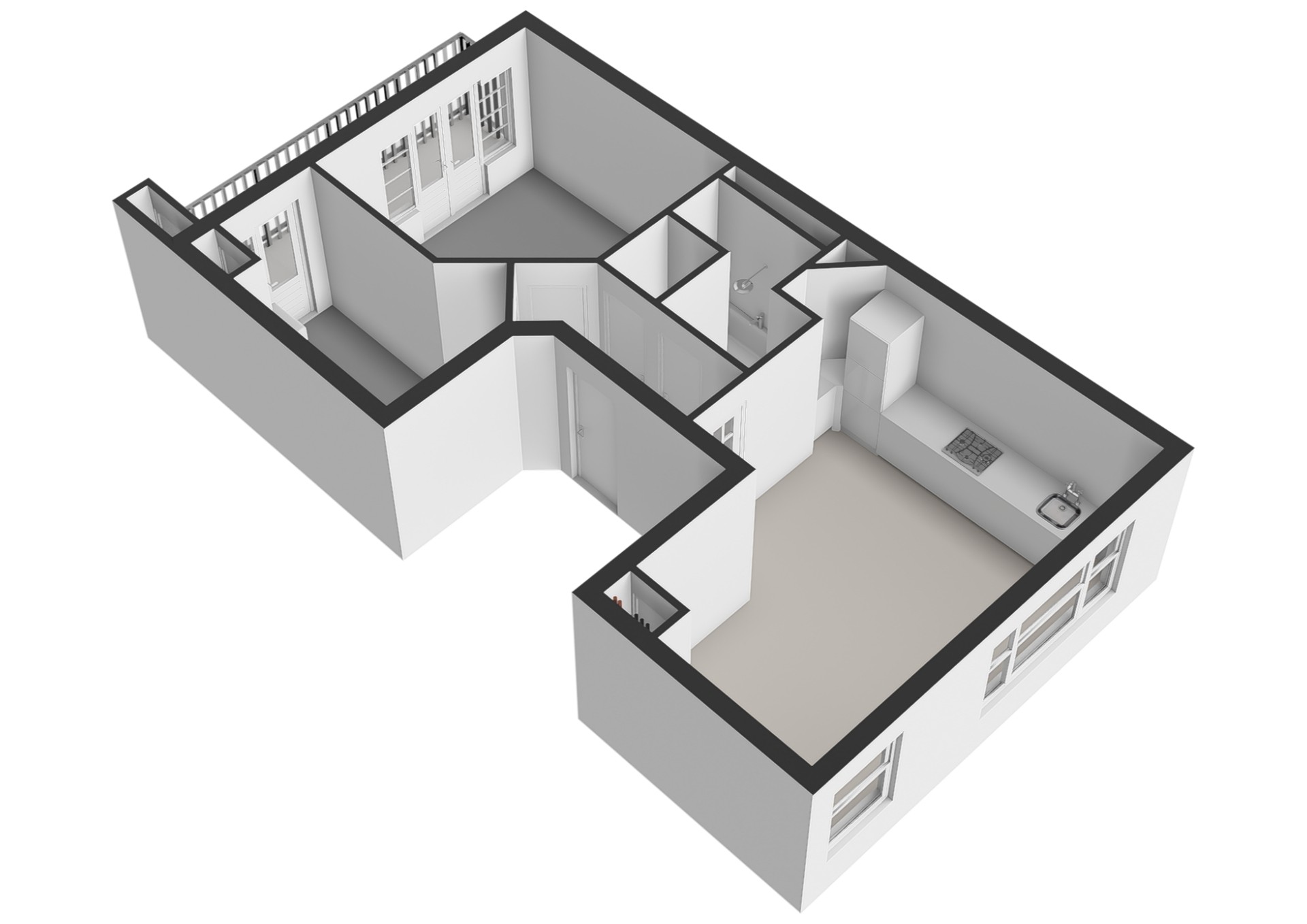 Het appartement is in 2020 verbouwd waarbij er o.a. een nieuwe keuken aan de voorzijde is geplaatst. Aan de achterzijde liggen 2 slaapkamers en een balkon over de hele breedte van het appartement.