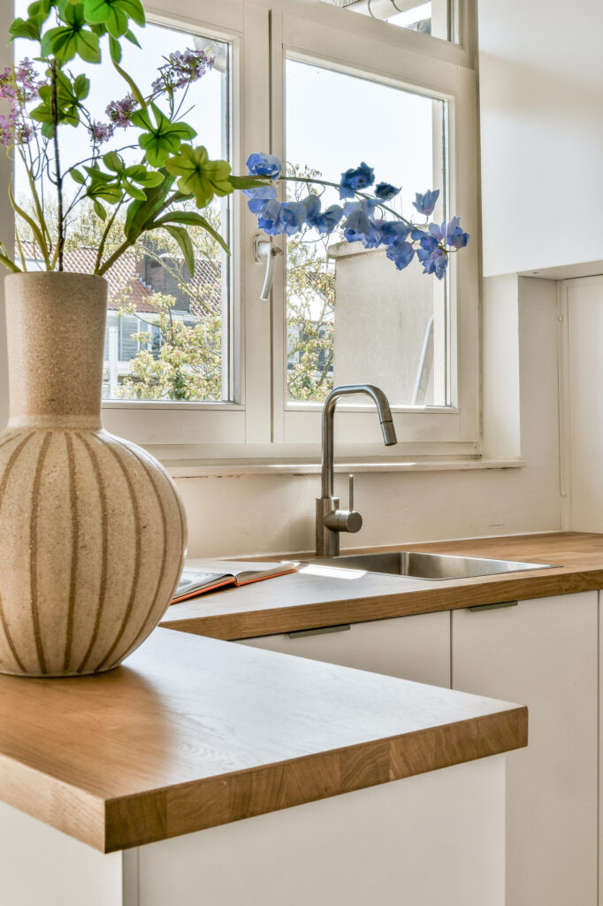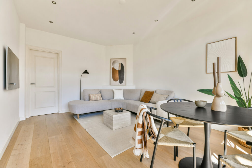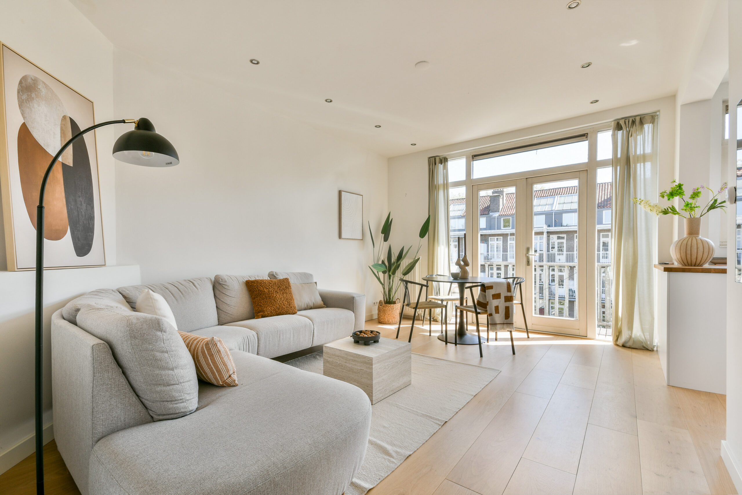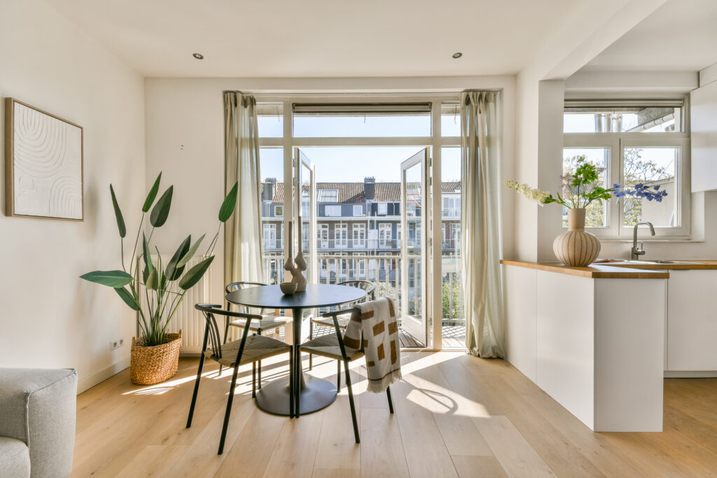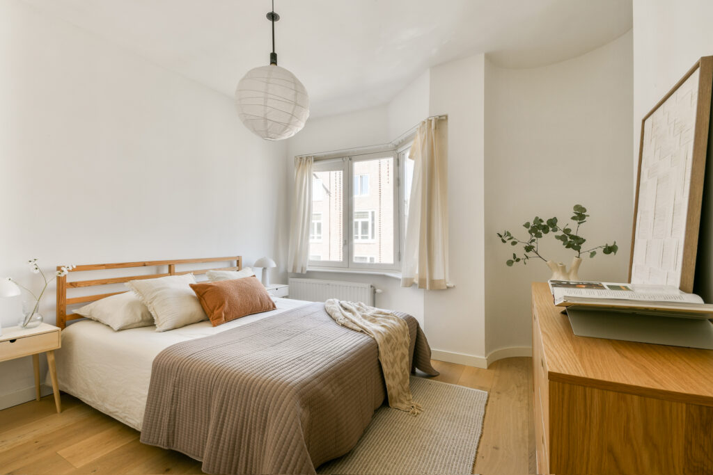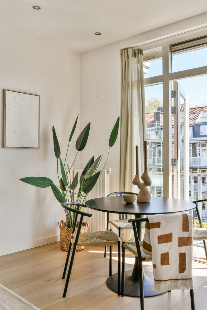 De woning is strak afgewerkt, voorzien van gestuukte wanden en sfeervolle paneeldeuren.