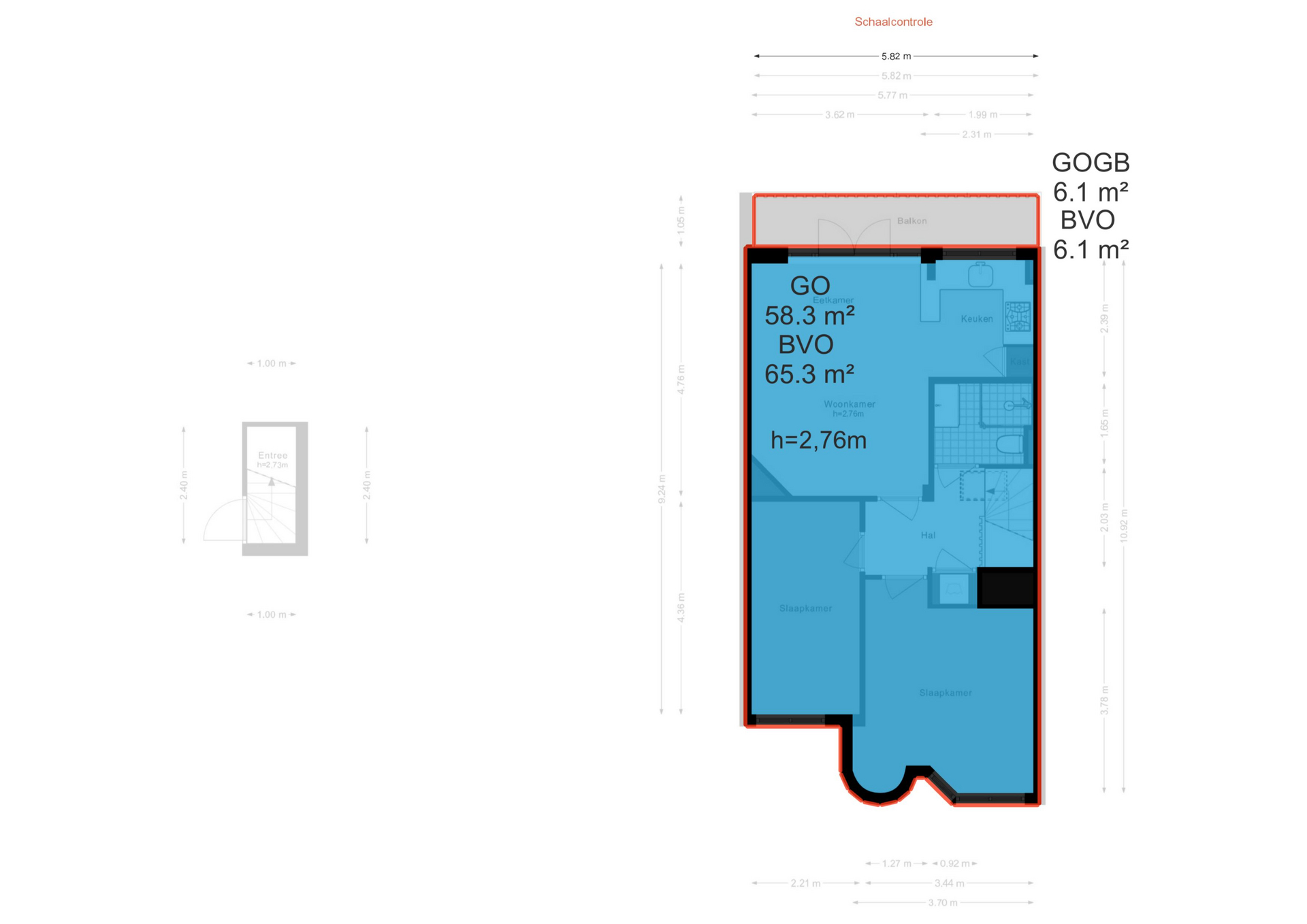 • Woonoppervlakte (NEN2580) 58,3 m²