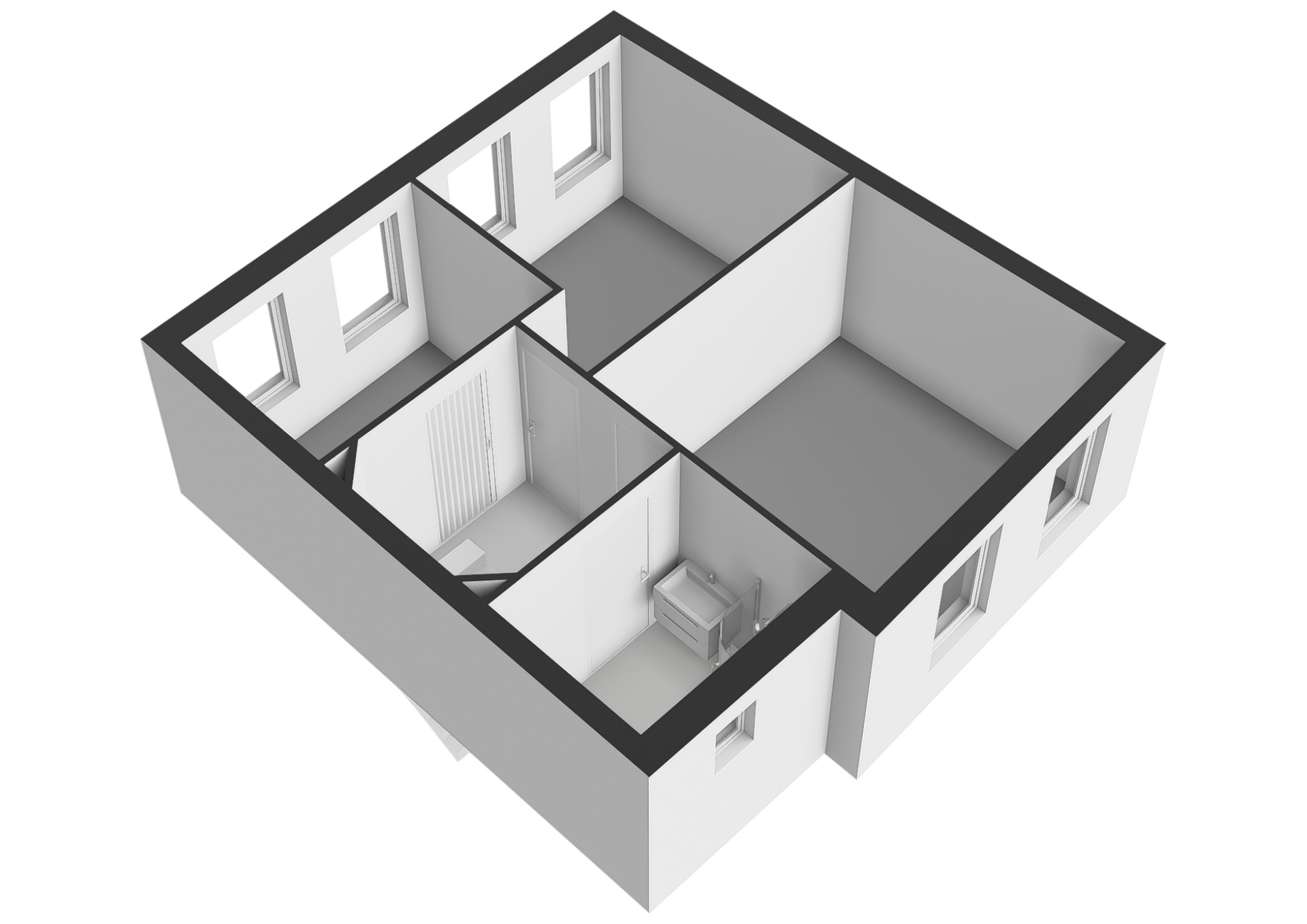 Hier bevindt zich de vierde slaapkamer, de aansluiting voor de wasmachine en toegang tot het dakterras. Deze etage biedt volop mogelijkheden om verder naar eigen wens in te delen of uit te breiden.