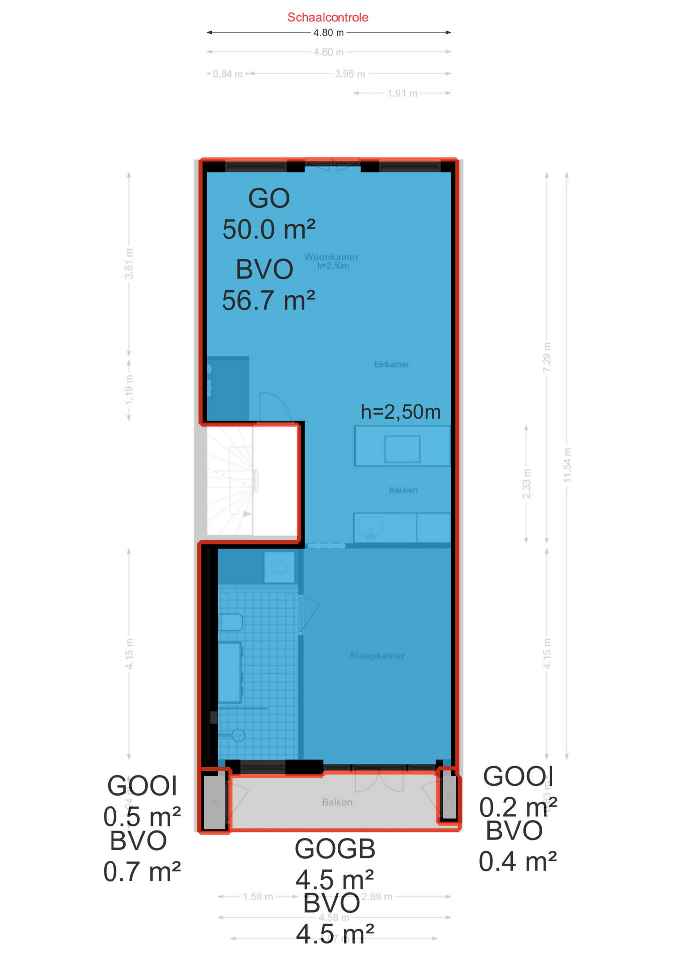 -Woonoppervlakte ca. 50m² (NEN2580)