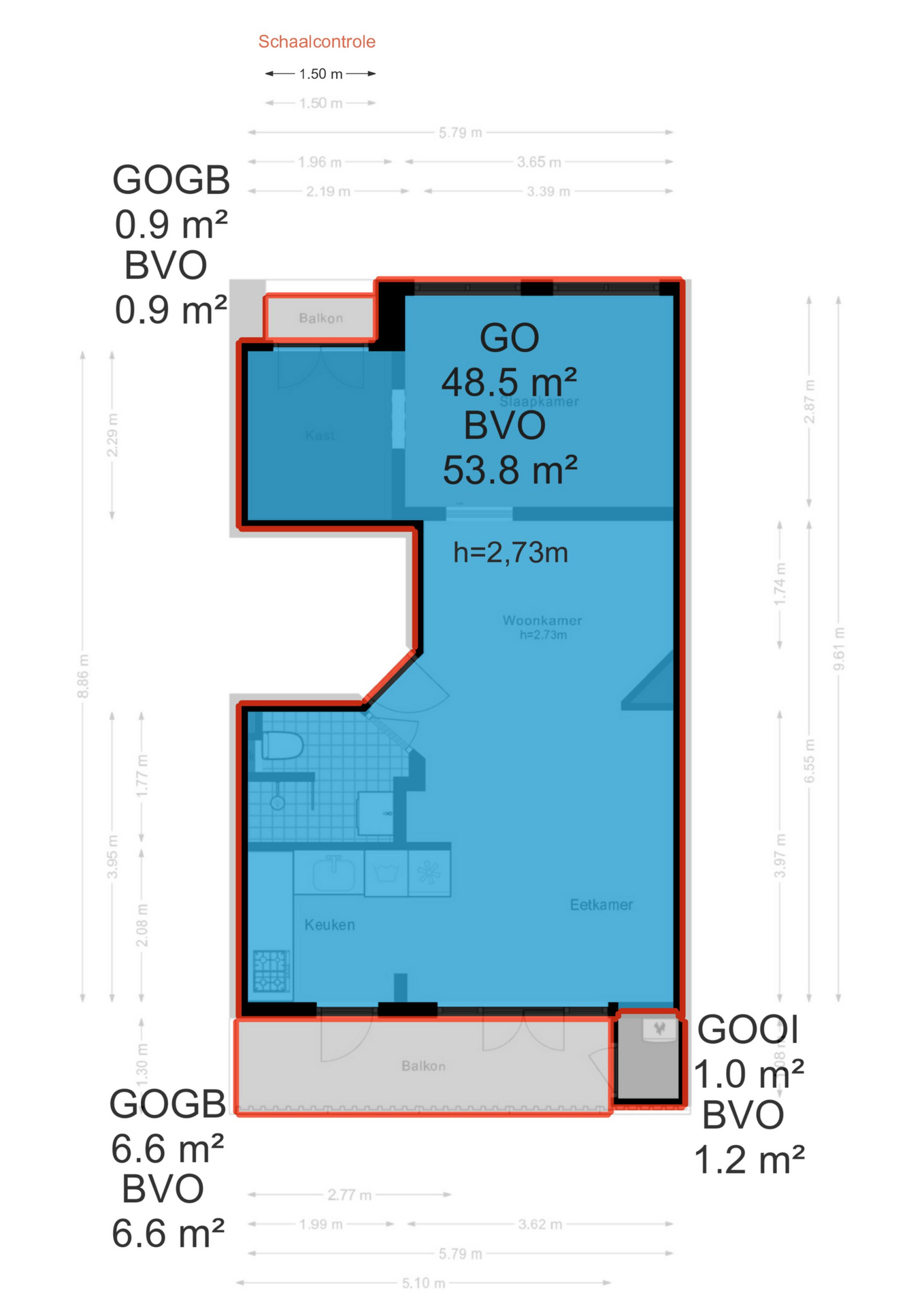 • Woonoppervlakte (NEN2580): 48,50 m²