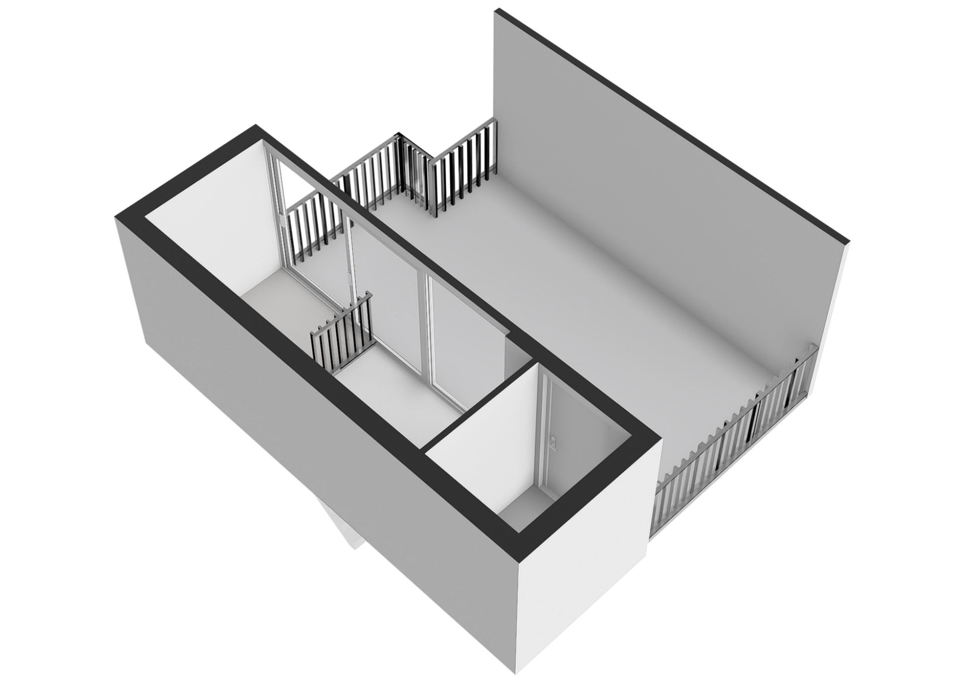 Derde verdieping: overloop met schuifpui naar het dakterras van 18 m2, erg privé gelegen op het zonnige zuiden en met toegang tot de berging.