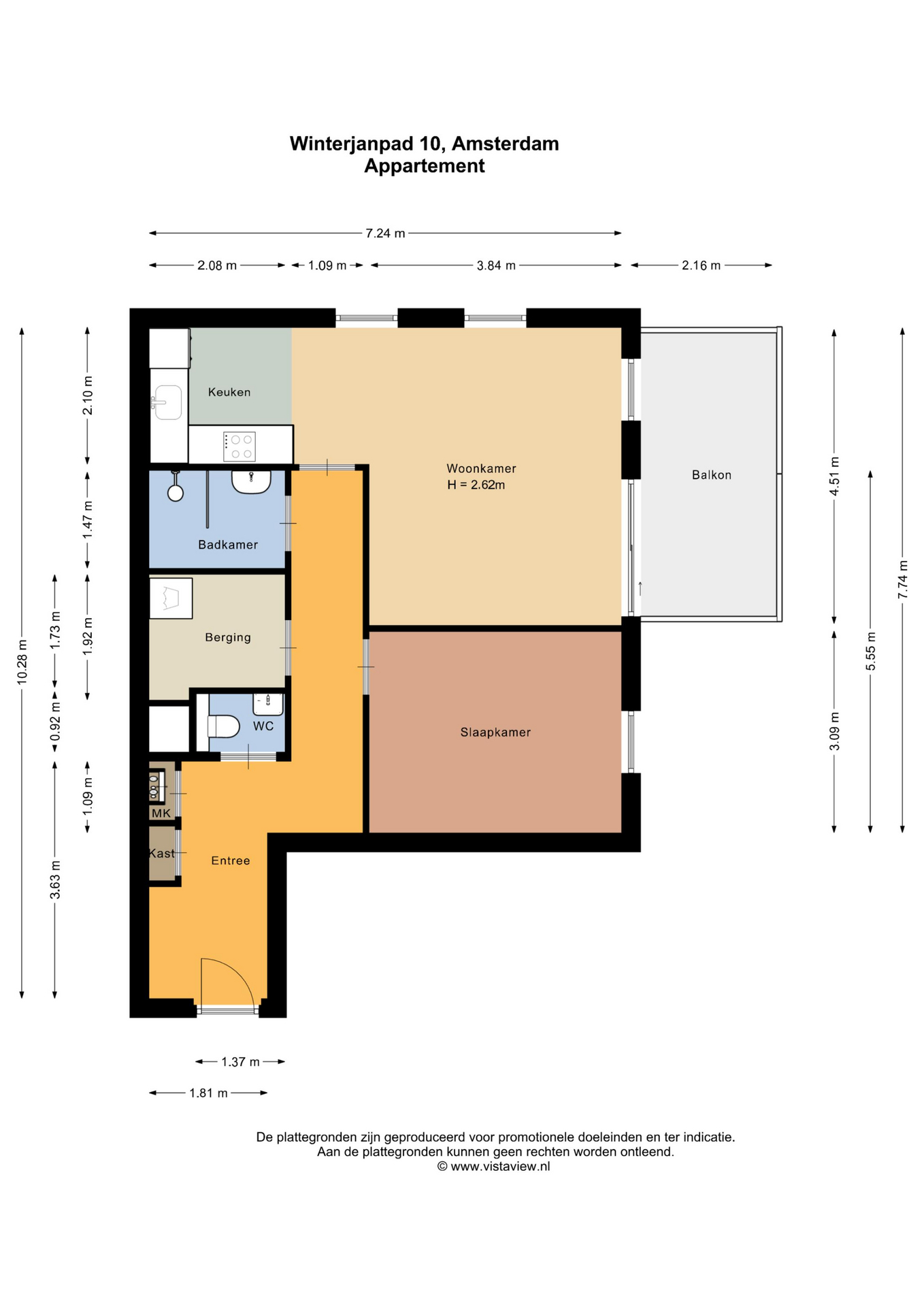 For exact measurements, please refer to the 2D and 3D floor plans under the section “plattegrond”.