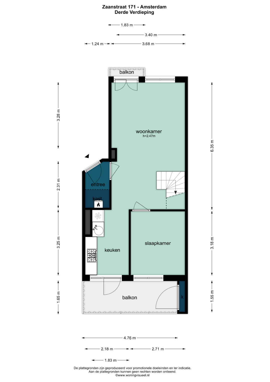 Dit praktisch ingedeelde 3-kamer appartement ligt op de 3e en 4e verdieping van een goed onderhouden complex aan de Zaanstraat. De woning heeft een woonoppervlakte van 71 m² met 2 balkons! Het appartement heeft een geweldig uitzicht op het Westerpark en veel lichtinval. Zowel in de woonkamer als de slaapkamers ben je volledig omringd door het groen.